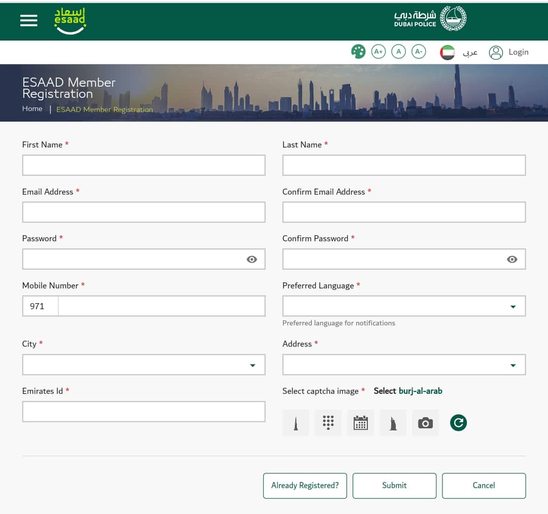 Dubai Police provides a registration portal for those eligible for Esaad electronic Card at the following link esaad.dubaipolice.gov.ae, where the user can enter the link and register on the site in easy steps.